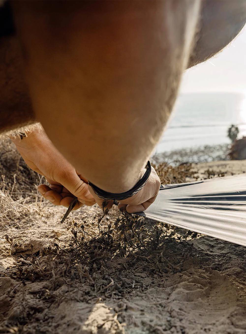Koc Pocket Blanket pomieści od 2 do 4 dorosłych osób (2 w pozycji leżącej lub 4 w pozycji siedzącej). Dzięki niewielkim rozmiarom zmieścisz go nawet w kieszeni plecaka czy spodni. Narożniki koca zostały wyposażone w małe metalowe śledzie umożliwiające przytwierdzenie koca do podłoża. Dodatkowo nieduże kieszonki na piasek sprawiają, że koc można obciążyć także na plaży.