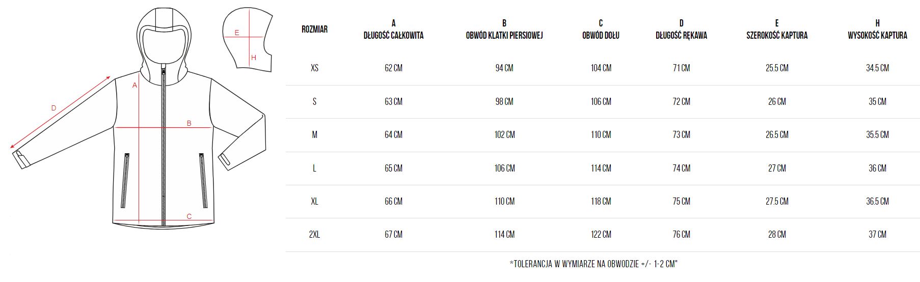 - waga kurtki: model S ok. 480 g