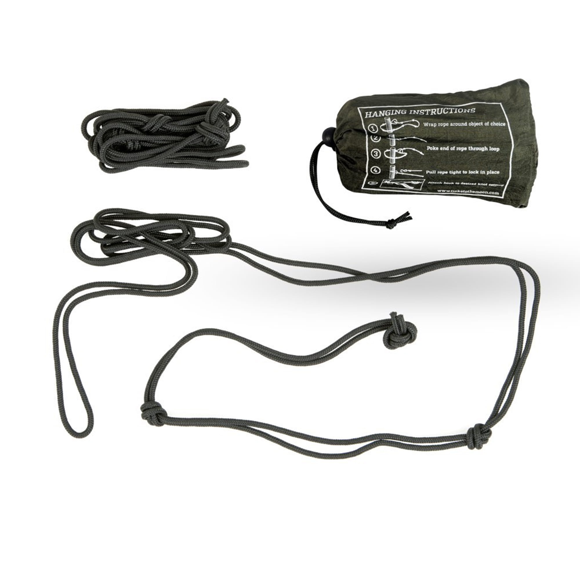 Zestaw Nautical Ropes składa się z dwóch wstępnie powiązanych lin żeglarskich, które pozwalają zamontować hamak w kilka sekund. Podobnie jak hamaki Ticket to the Moon zapakowane są w mały pokrowiec, więc można zabrać je wszędzie, bez zbędnego zajmowania miejsca lub obciążania plecaka. Gotowe do użycia, pasują wszędzie.