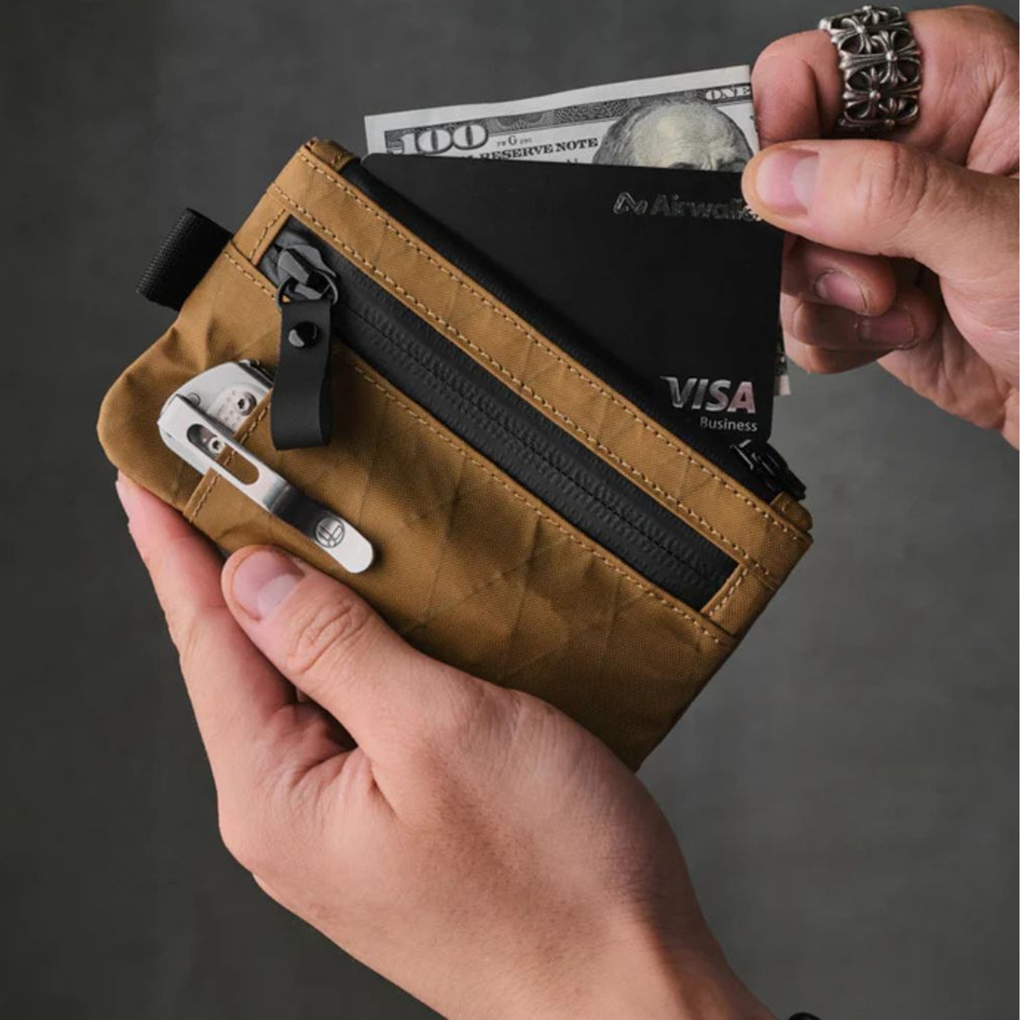 Portfel wykonany jest z nowoczesnych, technicznych materiałów premium – takich jak X-Pac® VX21 czy Cordura® 500D. To tkaniny stworzone z myślą o najwyższej odporności: lekkie, a jednocześnie niezwykle wytrzymałe na rozdarcia i ścieranie. Dzięki wodoodpornej powłoce chronią zawartość przed wilgocią, deszczem i przypadkowym zalaniem. Zastosowane materiały nie tylko gwarantują trwałość, ale też nadają portfelowi nowoczesny, minimalistyczny wygląd, który długo zachowuje świeżość mimo intensywnego użytkowania.