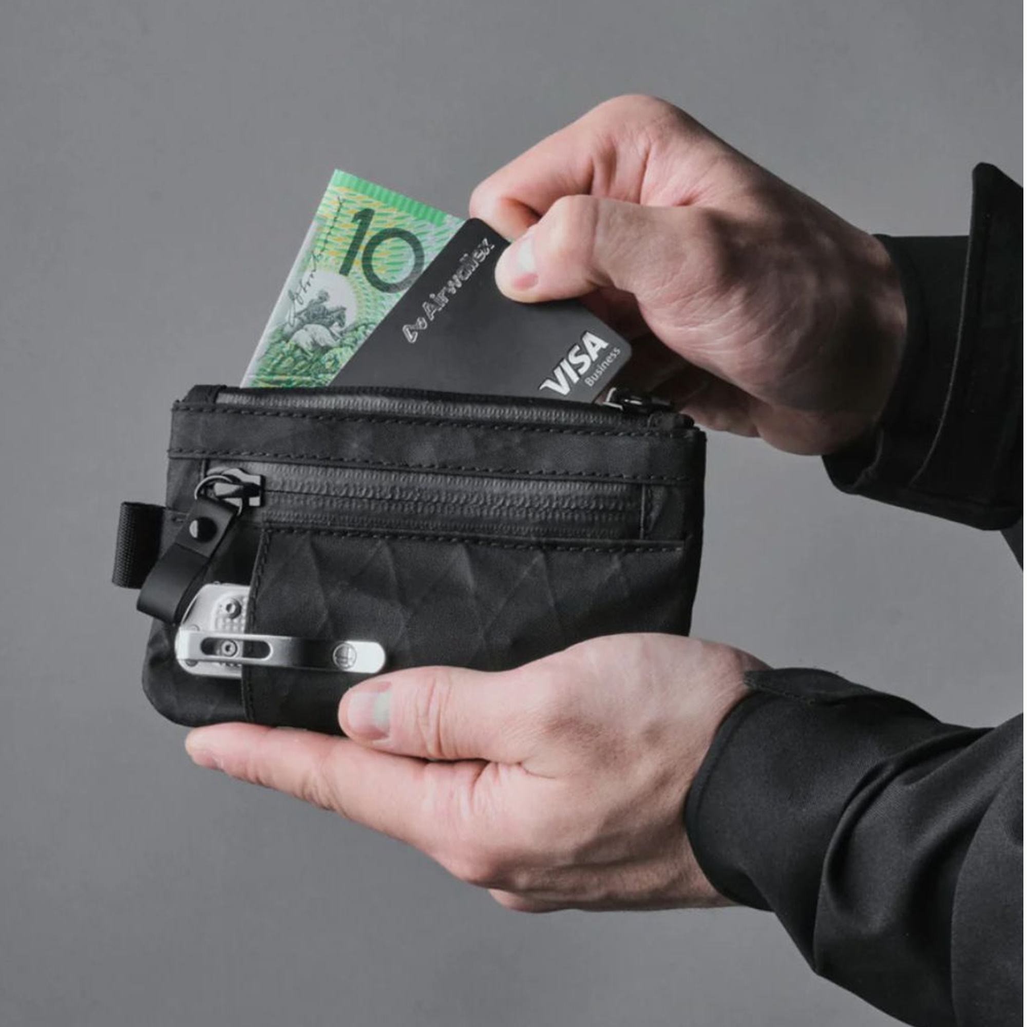 Portfel wykonany jest z nowoczesnych, technicznych materiałów premium – takich jak X-Pac® VX21 czy Cordura® 500D. To tkaniny stworzone z myślą o najwyższej odporności: lekkie, a jednocześnie niezwykle wytrzymałe na rozdarcia i ścieranie. Dzięki wodoodpornej powłoce chronią zawartość przed wilgocią, deszczem i przypadkowym zalaniem. Zastosowane materiały nie tylko gwarantują trwałość, ale też nadają portfelowi nowoczesny, minimalistyczny wygląd, który długo zachowuje świeżość mimo intensywnego użytkowania.