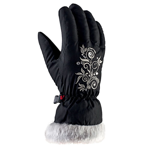 Rękawice dziecięce Viking Natty posiadają hafty ze srebrną połyskująca nitką i zdobienie kryształkami, którego dodają uroku i elegancji. Wykończenie przyjemnym, miękkim futerkiem stanowi idealne zdobienie dla małych dam. Połączenie eleganckiego wyglądu, przejawiającego się w zdobieniu kryształkami i wykończeniu futerkiem, z praktycznym, sportowym materiałem i ociepliną, dają pożądany efekt sport fashion, którego poszukują rodzice dla swoich małych księżniczek.