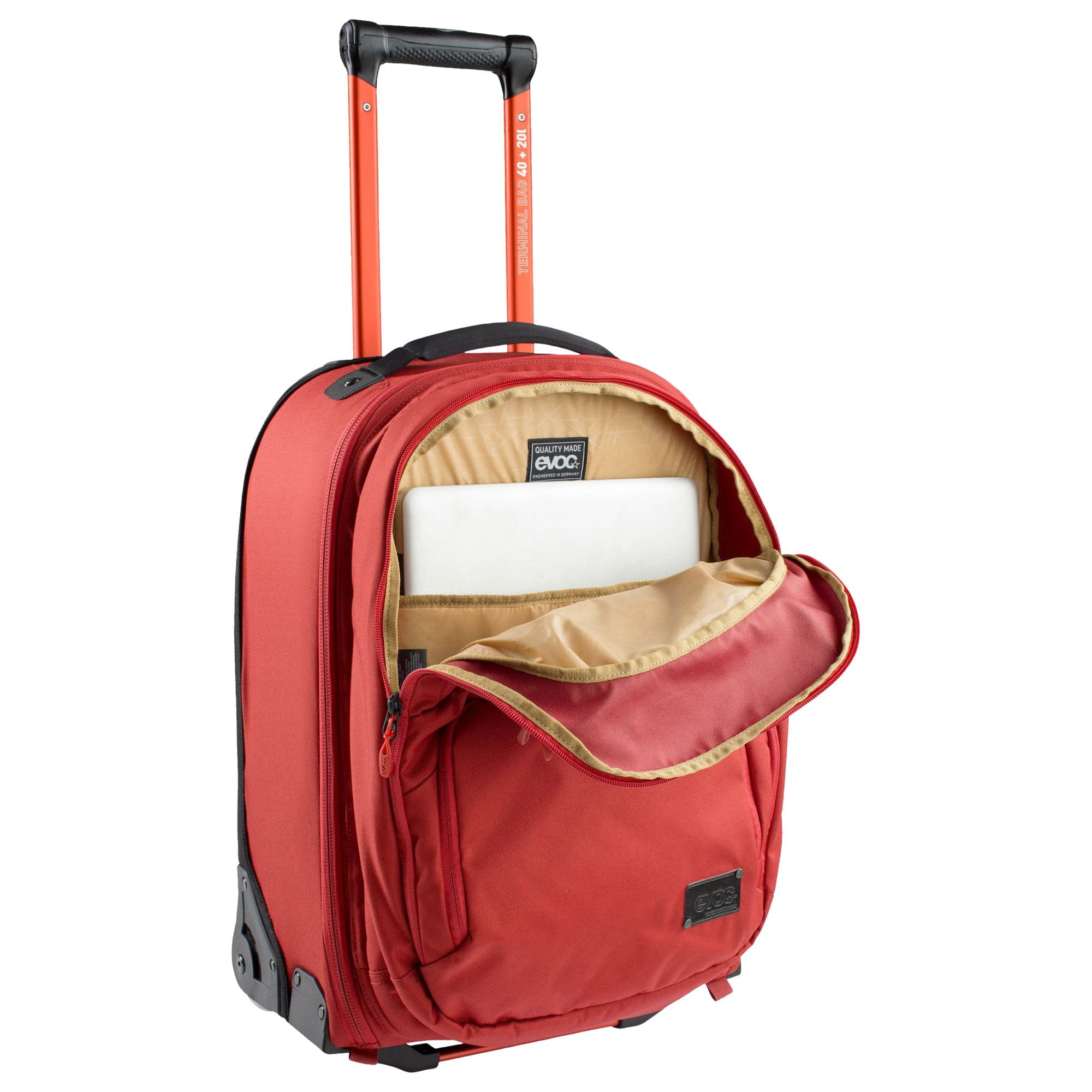 Walizka podróżna kabinowa z odpinanym plecakiem Evoc Terminal Bag 40L + 20L (37x38x55 cm) czerwony 401216512