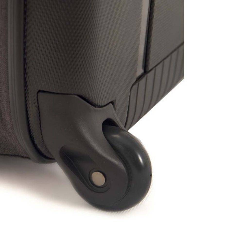 Łatwo dostępna kieszeń boczna umożliwia przechowywanie drobnych akcesoriów, biletów i innych niezbędnych rzeczy. Zewnętrzny profil 2-kołowy ułatwia manewrowanie i zapewnia dodatkowe miejsce do przechowywania. Ergonomiczna, teleskopowa rączka zapewnia dodatkową przyczepność podczas poruszania się w tłumie.